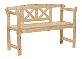 Strong and solid execution made of solid wood.Solid spruce wood, nature, polished.Width 125 Height 75 Depth 40 cm; Seat Height 45 cm.Incl. mounting material.Delivery incl. assembly instructions. Wooden Garden Bench with a crossed rest, natureWidth 125 Height 75 Depth 40 cm; Seat Height 45 cmSolid spruce wood, nature, polishedStrong and solid execution made of solid woodComfort: slightly inclined backrestincl. mounting materialDelivery incl.